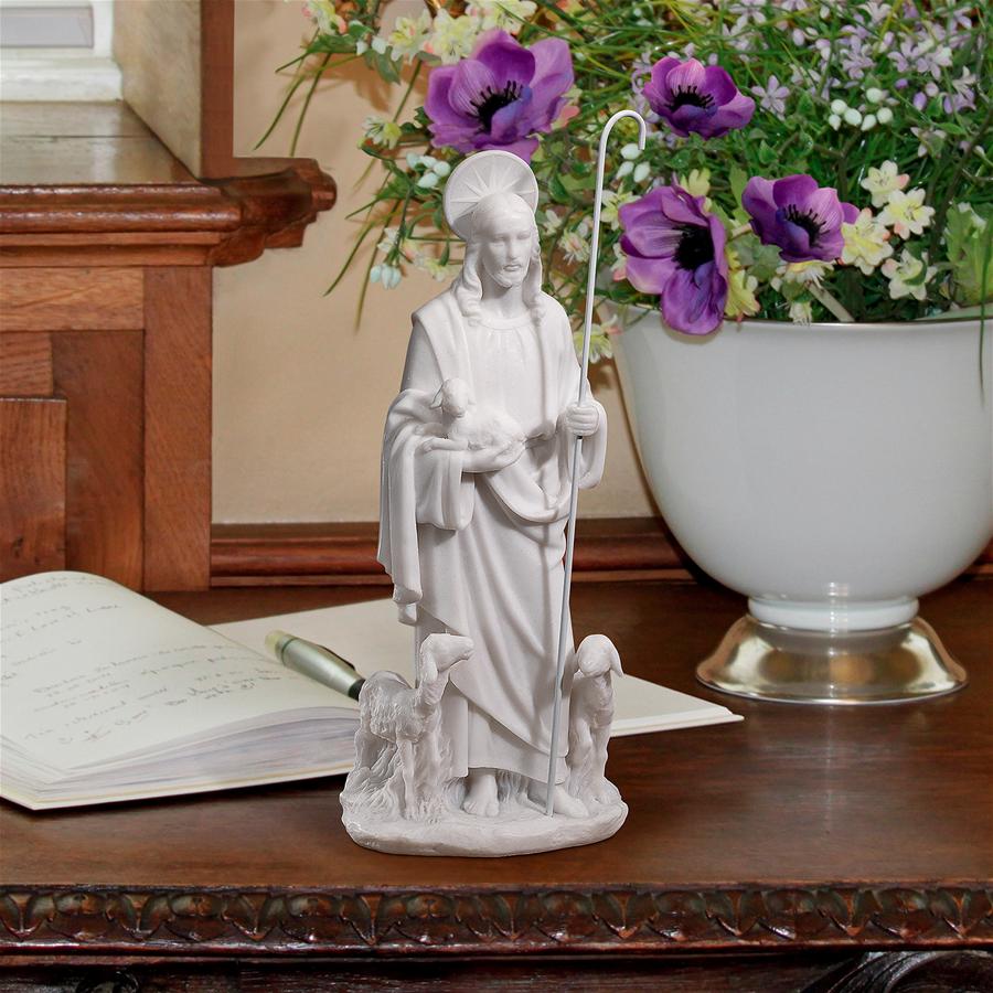 The historic Jesus Christ of Nazareth declared himself the Good Shepherd, the one who protects, guides and nurtures his flock of followers. Sculpted with detail from staff to crown, our quality bonded marble resin religious statue depicts the Passover Lamb on his earthly mission. Available only from Design Toscano, this collectible work of religious art is ready for proud display or to admire in a place of quiet contemplation. 5 Wx3½ Dx12½ H. 1 lb.