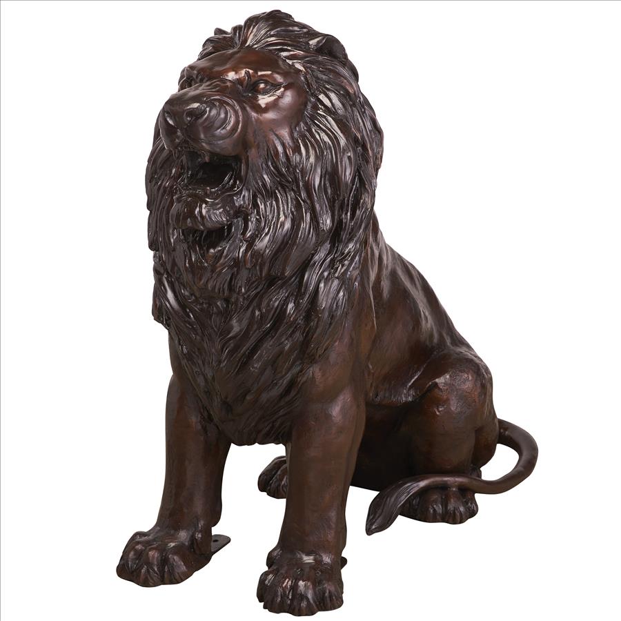 Our grand-looking Guardian Lion Cast Bronze Statue adds timeless majesty to your entry way or garden expanse. Expertly hand-crafted one-piece-at-a-time in the traditional lost wax method from heirloom quality bronze with an antiqued sepia patina. At over three feet tall, this fierce lion statue is expertly cast and hand-crafted one-piece-at-a-time in the traditional lost wax method. Our weighty lion sculpture is expertly finished with hand-applied multi-toned sepia. This impressive 360-degree Design Toscano heirloom-quality bronze statue conveys that you take the exterior of your home as seriously at the interior. Color patina is applied by hand one piece at a time, tone may vary slightly.